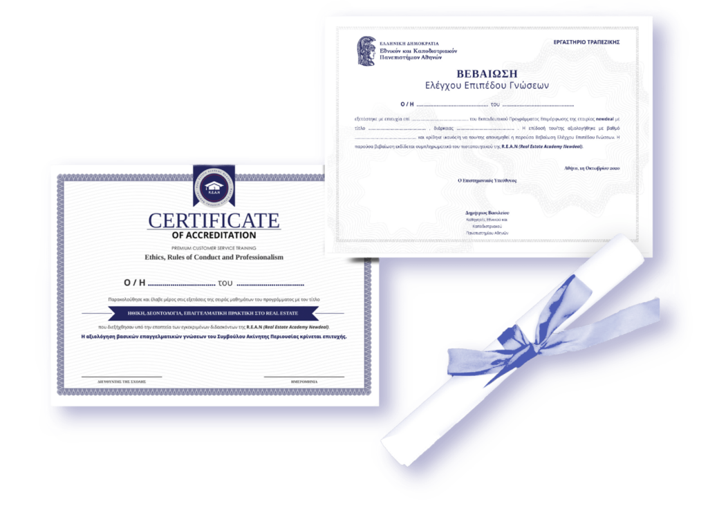 ☑ Πλήρης εκπαιδευτικός κύκλος από την Ακαδημία real estate και ΕΚΠΑ